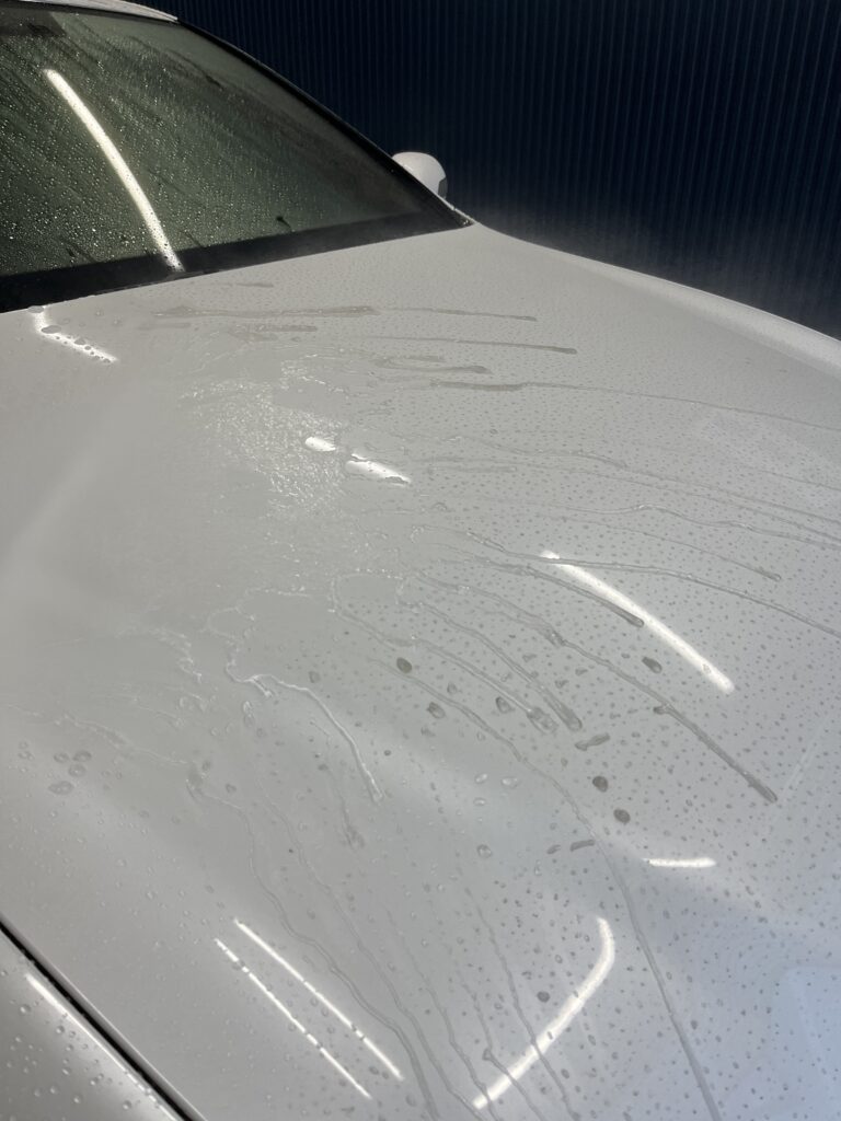 汚れごとスルッと流れていきます。撥水コーティングの気持ちいい瞬間です。