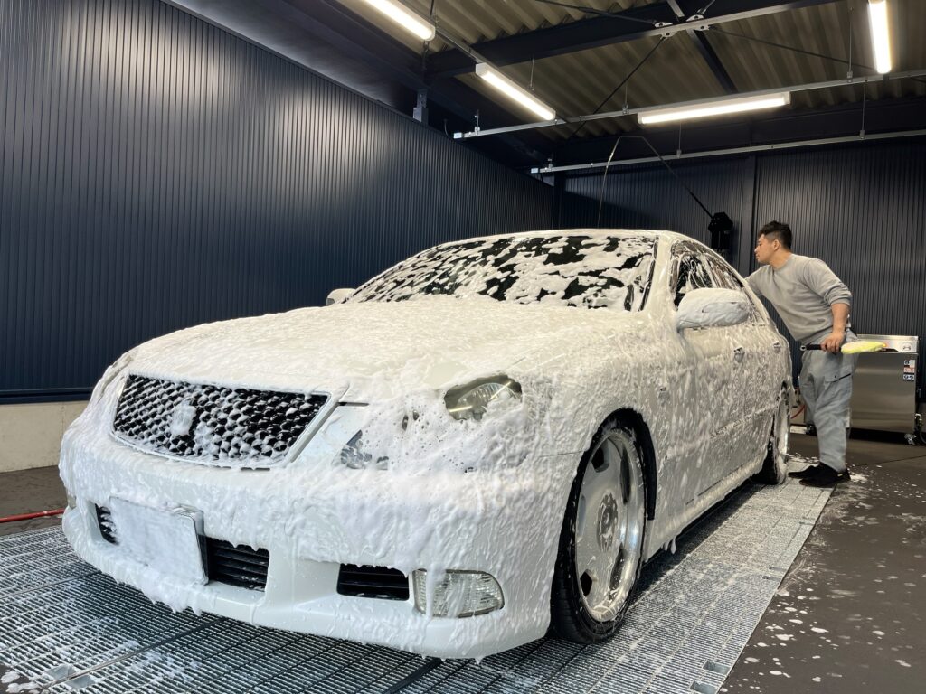 純水の高圧洗浄機とモチモチ泡のフォームガンで楽しく作業できるナイスな洗車場でしたよ。